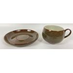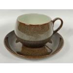 A DENBY GREYSTONE dinner service comprising 6 bowls (16.5cm), 6 bowls (15cm), 6 cups, 6 saucers (14.5cm), 6 plates (16cm), 6 plates (26cm), 1 bowl (18cm dia), 1 sugar bowl, these plates have been used and consequently have expected scratches