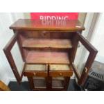 A SUPER QUALITY EDWARDIAN c1905 APOTHECARY CUBAN mahogany glazed cabinet with twin glazed doors, two drawers and further twin glazed cupboard doors - suitable shelves for storage space and it comes with its original key for locking etc - dimensions 125cm height x 65cm length x 25cm depth