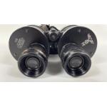 This type of binocular was used aboard the German Kriegsmarine. Both eyepieces are separate to focus 7×50. Good definition markings and clearly engraved is the German imperial eagle clutching an orb of the world with swastika and M below, maker marked 7x50. Binoculars come with a non-original brown leather case, the original case would have been black leather - dimensions 22cm height x 16cm width(at widest point)