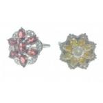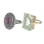 THE STUNNING BLING COLLECTION of 925 silver dress rings with fabulous varying large stones - floral garnet style ring size M, yellow petal style ring size J, large rectangular faceted stone size K and finally the large oval multi-garnet style ring size O - gross weight 27g approx