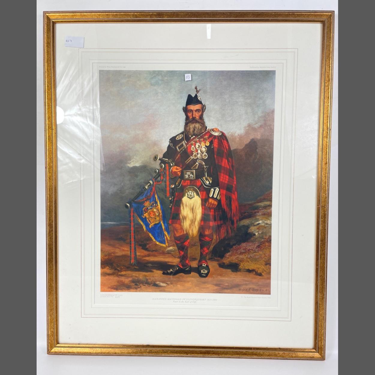 A limited edition (257/500) framed print of a piper, Alexander MacDonald of Glenurquhart 1835-183, piper to the Earl of Fife, signed Alfred Grey frame size 70x58cm, visible work 45x35cm appro