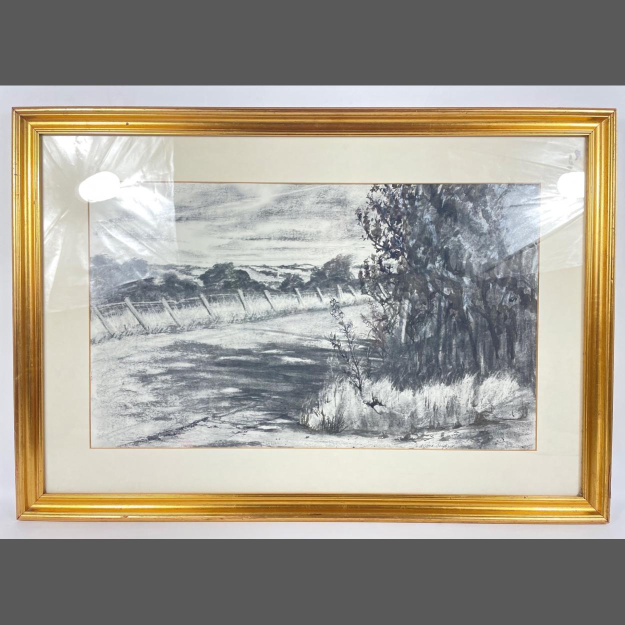 A framed mixed media landscape 'Muirkirk Road', signed Wilma Shepherd frame size 78x54cm, visible work 59x35cm