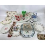 A mixed china lot to include 2 tennis plates and cups by DUCHESS CHINA and GEORGE CLEWS, a super-large ashet (46cm long), a 12 piece APULUM breakfast set white with gilt trim, still in box ready for posting, a HOSTESS TABLEWARE tea service comprising 6 each of cups, saucers (1 cracked, repaired), side plates plus milk jug and sugar bowl, a SUMMERBANK tea service 5 cups, 8 saucers, 5 side plates, 2 cake plates plus 2 milk jugs and sugar bowl