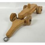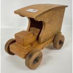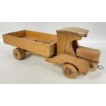 A real treat for lovers of wooden hand-crafted items - a pull along vintage car (22x18cm), a tractor with removable trailer (47x18cm) plus a further trailer 40cm long
