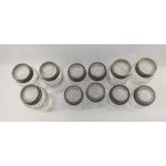 Twelve Retro GLASS MASON JARS - 6 large labelled 'THE FORSTER JAR' (3lbs, 21cm high, 1 has a cracked lid), and 6 slightly smaller in clear glass