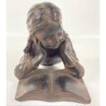 A composite/bronzed figurine of a girl reading 35x18cm high