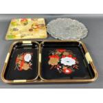 Be ready for your next party with this wide selection of serving dishes and platters to include a QUEEN ANNE silver plated tray,various hors d'oeuvres divided trays including by TWINCO, CRISTAL D'ARQUES ashtrays, King George IV whisky water jug