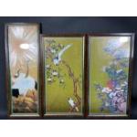 A set of five prints of exotic birds frame size 57x31cm, plus a single print of a pair of cranes, frame size 65x24cm