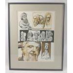 JACK FIRTH RSW (1917-2010) framed ink and watercolour of classic heads montage