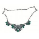 A nice VINTAGE c1920's white metal filigree style green stone necklace