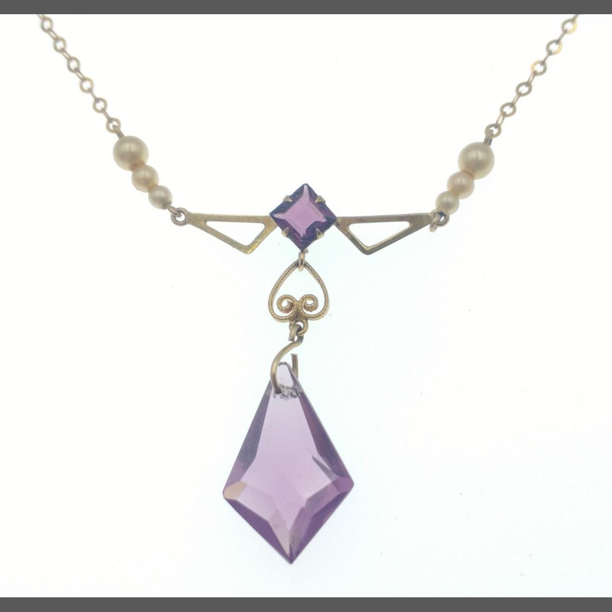 A 9ct stamped yellow gold PRETTY vintage AMETHYST set pendant - gross weight 3.04g approx