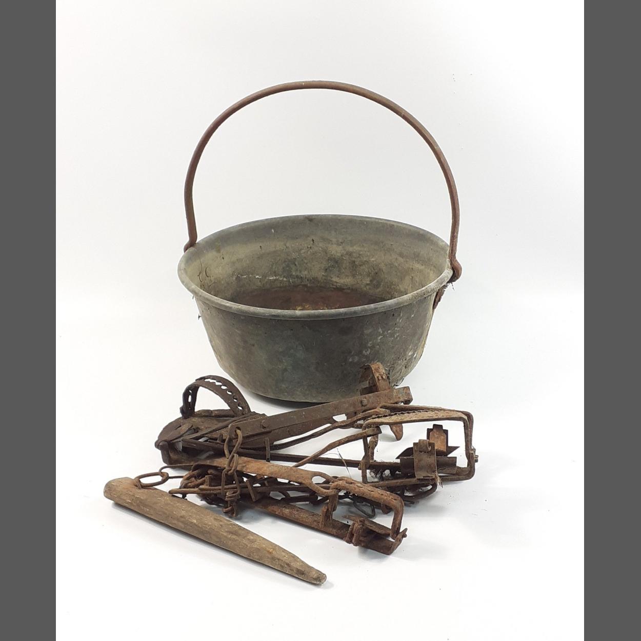 An aluminium jelly pan filled with any old iron and 2 small storage racks for all sorts of bits and bobs each 22x16x17cm