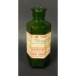 A collection of vintage glass bottles to include 3 with marble stoppers from 'Alex A Adam, Chemist, Alyth', 'H Muir West Shaw St, Kilmarnock', 'JB Grieve, Carlisle', 3 bottles with screw tops from Leitch, Edinburgh', 'A Middlemas & Son, Kelso', 'James Dunbar, Albion St, Edinburgh, one unstoppered bottle from 'Wm Petrie Ltd, Leith' and a small green medicine bottle with a 'Not to be taken - Carbon Tetrachloride' label