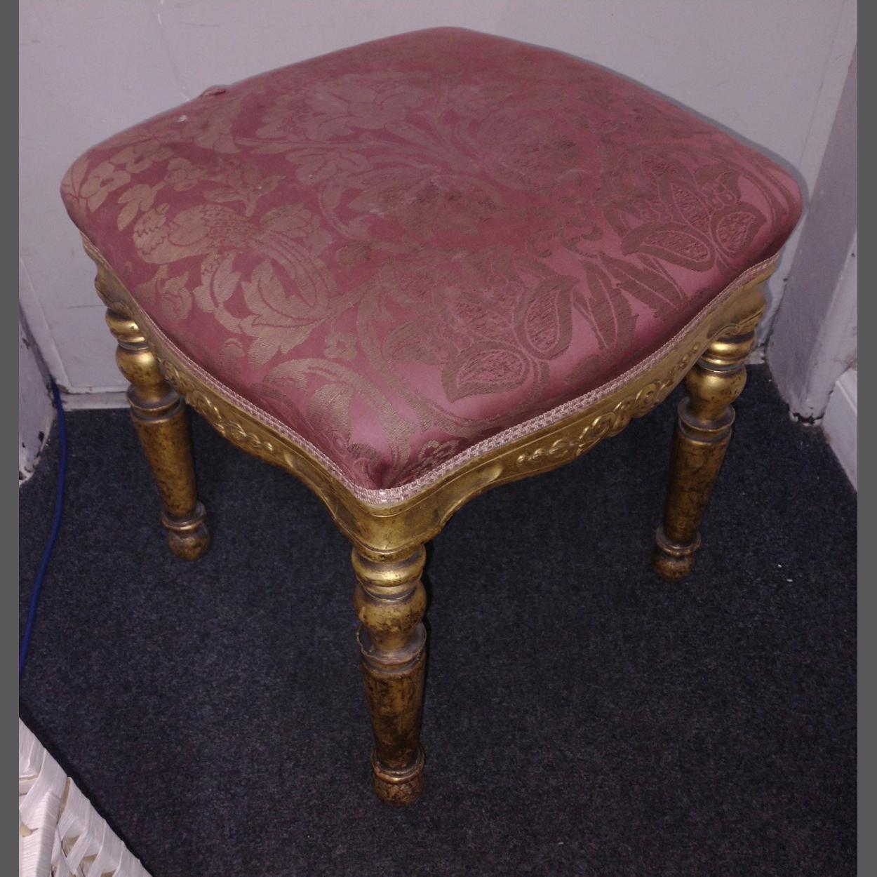 POSH! Square topped stool with gilded legs and red and gilt top seat pad