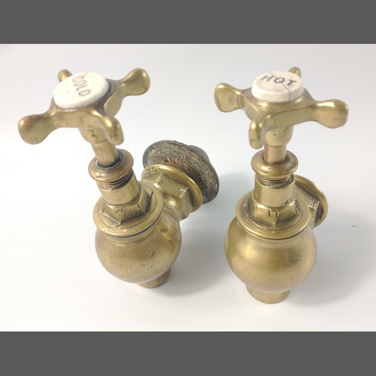 A VICTORIAN set of solid brass GLOBE hot and cold taps