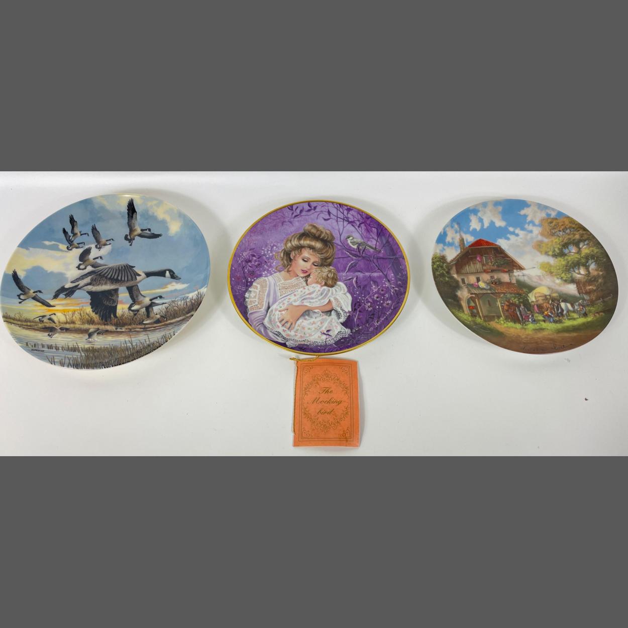A small collection of collectors' plates to include 'The Blacksmith', 'The Landing' from the Canadian Dominion China collection, and 'The Mocking Bird' from Kaiser Porcelain