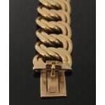 A GLAMOROUS HEAVY GOLD 375 stamped yellow gold bracelet weight 53.48g approx - 21cm length