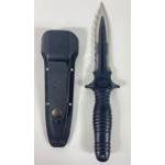 An INOX Mares Sub scuba diving knife in sheath, a Fury double serrated knife with 12cm blade plus 2 other knives