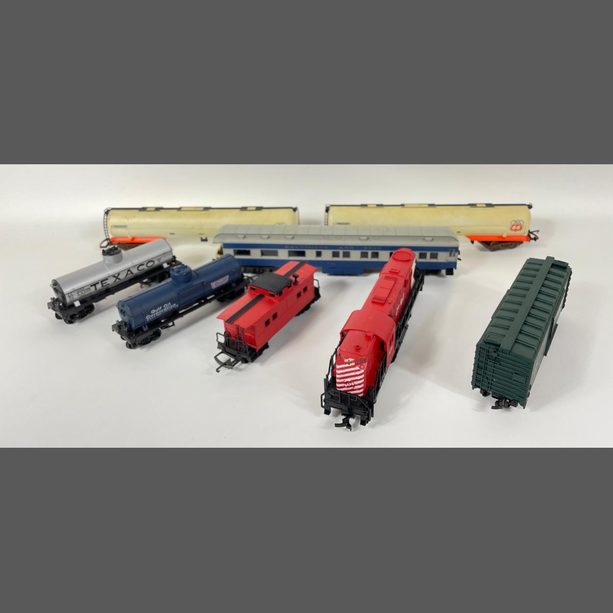 An HO CANADIAN PACIFIC POWERED LOCO 8776 by ALCO in non original box with 7 assorted carriages and rolling stock. All in good order. From a large model railway layout and collection well cared for. Complete used but untested.