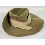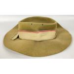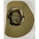 Military Headgear / Headwear. ROYAL ENGINEERS TROPICAL BUSH HAT, Khaki felt hat with turn up brim to the left side and fitted with a silk Royal Engineers pagri badge. Nice original condition, strap broken and some creasing and minor stains