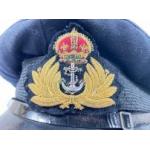Military Headgear / Headwear. WWII Era ROYAL NAVY PEAK VISOR CAP HAT with Bullion insignia. Made by Gieves of London and named label to inside. Fine wool construction in good order.