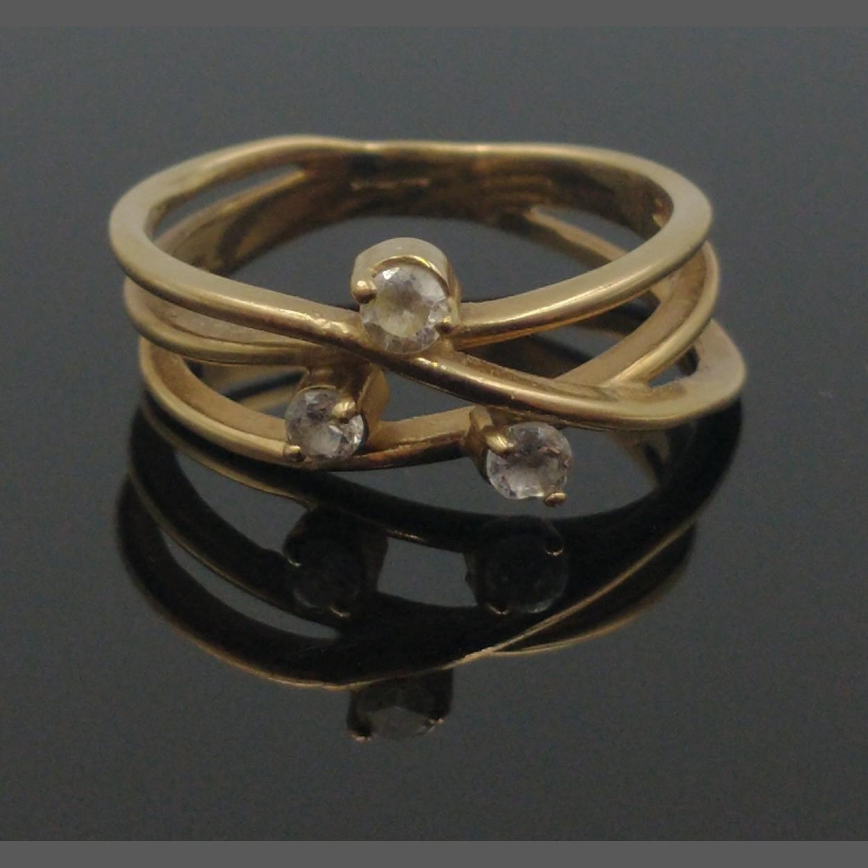 An ISLE OF ARRAN fashioned 375 stamped yellow gold ring with three small white stones gross weight 3G approx