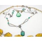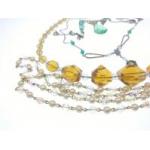 A collection of VINTAGE necklaces to include two green stone feature necklaces, a SUBSTANTIAL AMBER style necklace, and a faux pearl and white crystal effect necklace - all around c1950's -