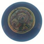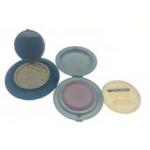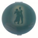 Two vintage STRATTONS NON-SPILL compacts - one in green with a dancing couple and the other black with a tapestry rose in the centre and still containing a quantity of rouge in the inner container