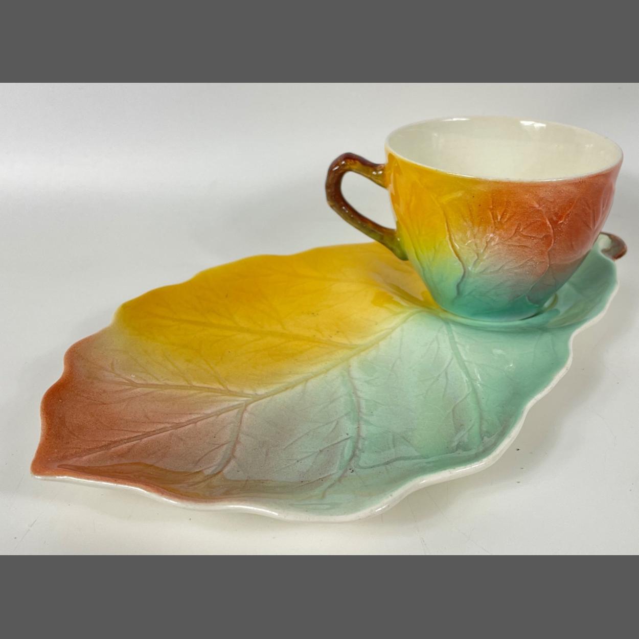 A ROYAL WINTON tennis set of cup and saucer in a yellow and green pattern, no chips or cracks