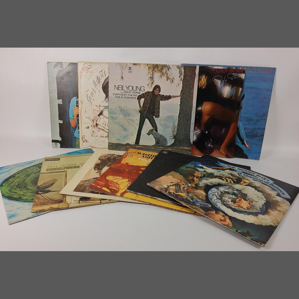 Vintage albums to include CRICKLEWOOD GREEN Ten Years After (1970), MIKE OLDFIELD Hergest Ridge (1974), TERRY JACKS Seasons in the Sun (1974), JAMES TAYLOR Mud Slide Slim (1971), WISHBONE ASH Pilgrimage (1971), THE MOODY BLUES A Question of Balance (1970), CAROLE KING Thoroughbred (1975), CHICAGO TRANSPORT AUTHORITY (1969), GERRY RAFFERTY Can I have my Money back? (1971), MUNICH MACHINE Body Shine (1979), NEIL YOUNG with CRAZY HORSE Everybody Knows this is Nowhere (1969)