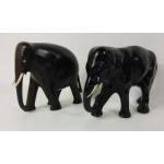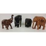 A herd of elephants in various materials ranging in size from 10-15cm (small chip of paint missing from one leg)