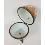 A ceramic porcelain Easter Egg on three feet, stands 15cm high