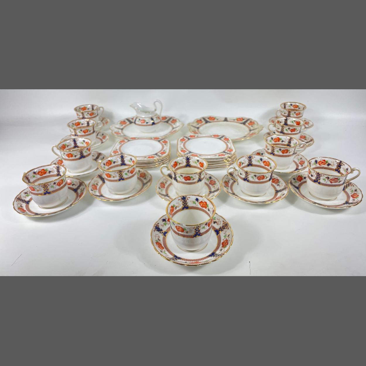 A TUSCAN china 'Plant' fine bone china tea service to include 12 cups (1 with slight chip), 12 saucers, 11 squarish plates (15cm 1 with slight crack), 2 cake plates, 1 milk jug
