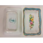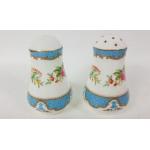 A small collection of CROWN STAFFORDSHIRE china with a floral patterm, and gilt rim to include 2 oval dishes (19cm length), a trinket dish with lid (10cm long), 2 matching smaller dishes (9cm) and a cruet set