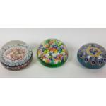 A collection of ten paperweights mainly glass millefeuille style includes one unusual resin weight with a crab captured within