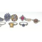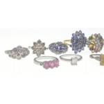 A nice SELECTION of 11 925 stamped silver rings and one with no stamp(the large multi-coloured stone ring) - 12 in total