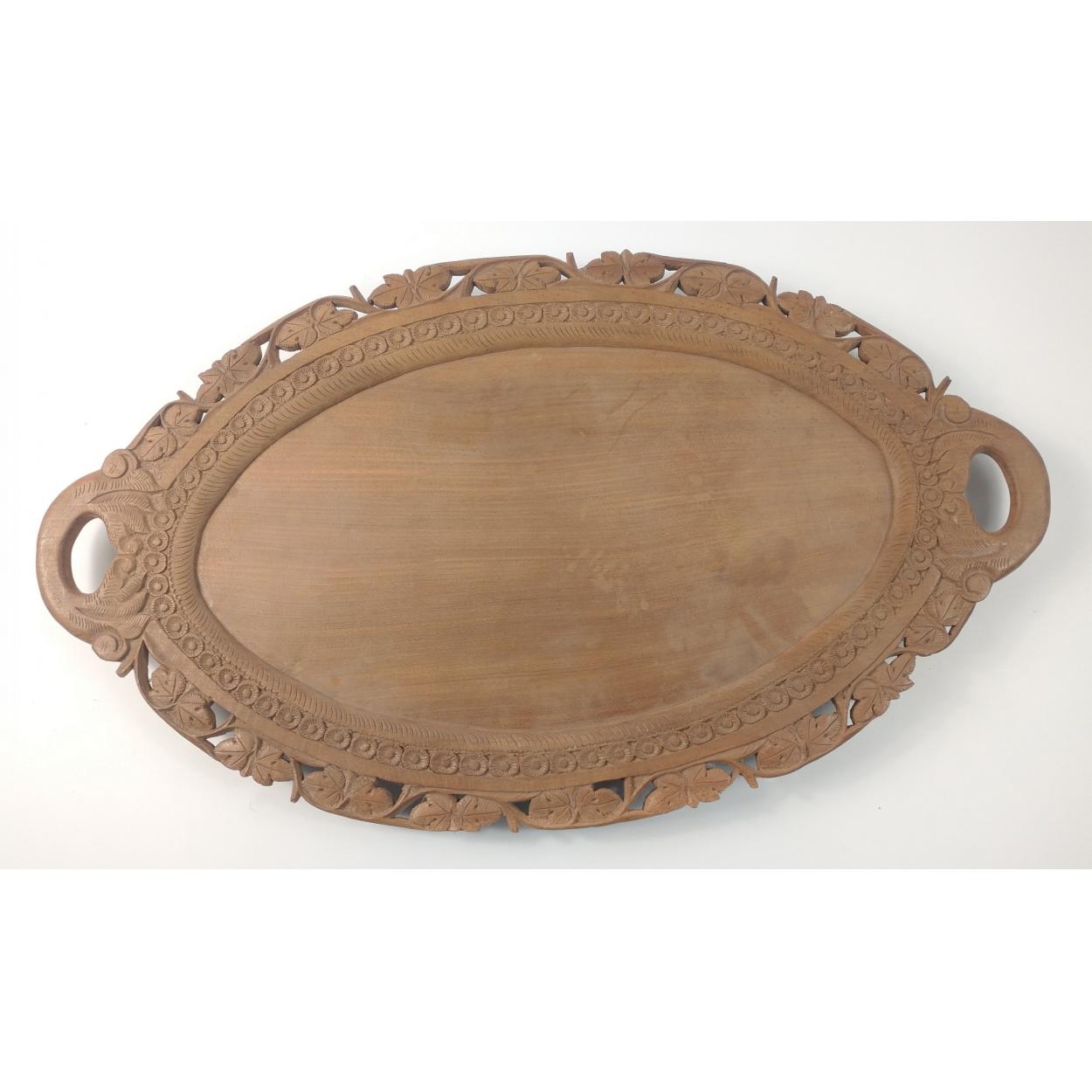 A large INDIAN WALNUT tray with carved rim 58cm long