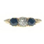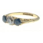 A VICTORIAN 18ct yellow gold with LARGE centred white DIAMOND measuring 0.6carats, flanked by two deep blue large SAPPIRES, gross weight 3.55g approx - ring size Q