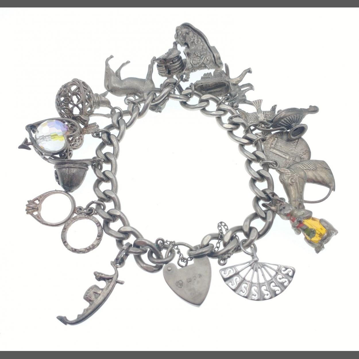 A SUBSTANTIAL & MUCH LOVED SILVER Hallmarked LION stamped old watch chain charm bracelet FULL of charms!