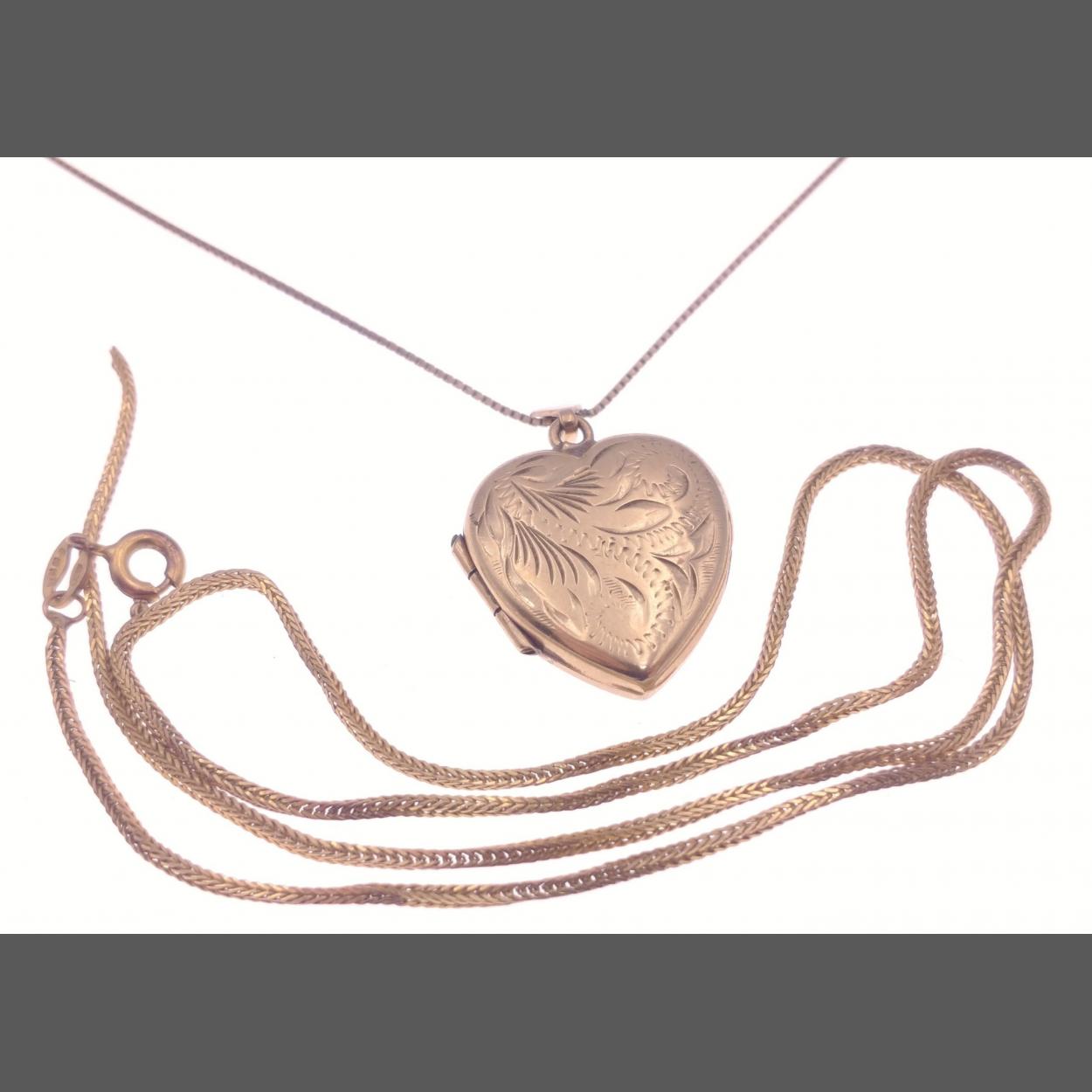 9k stamped broken yellow gold chain 2.30g approx with also a 5.80g gross weight 375 stamped yellow gold locket with a 375 stamped yellow gold chain - total weight 8.10g approx