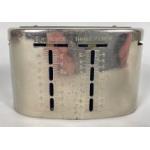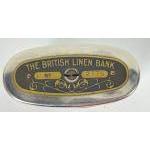 An unusual white metal money bank from the BRITISH LINEN BANK (no 2776) which has separate sections for sixpences, threepences, pennies or half-crowns, comes with its original box 10x6cm