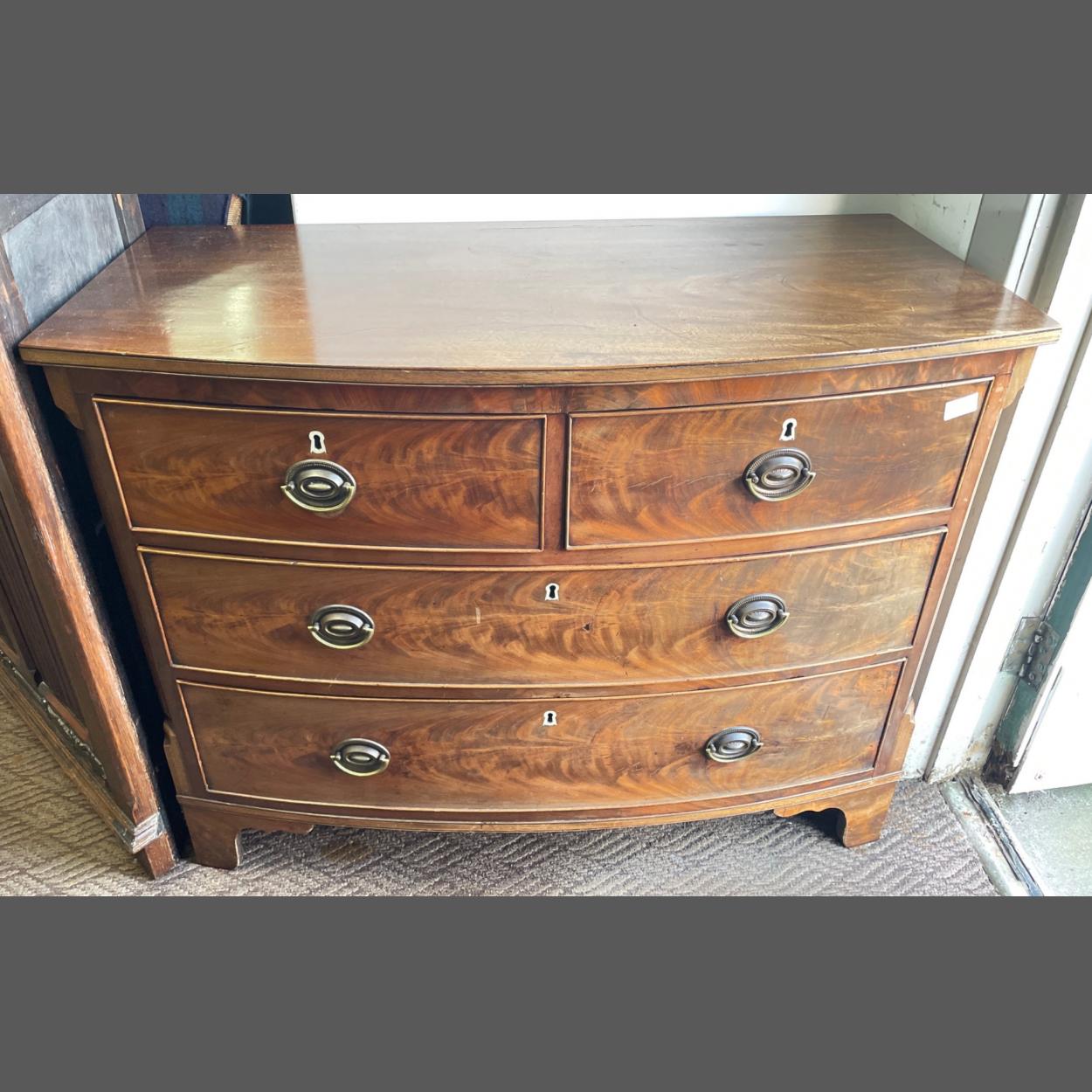 VICTORIAN - A nice quality mahogany two over two deep drawer BOW FRONTED chest of drawers with original feature brass ring pull handles and feature bone key holes supported on Ogee feet