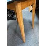 A small drop-leaf RETRO blue-topped formica kitchen table 90cm extended 50cm x 60cm unextended