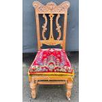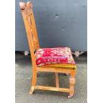 Six EDWARDIAN oak dining chairs with original ceramic castors