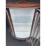 A VINTAGE Demi-lune shaped c1950's display cabinet with glass shelves - dimensions 82cm length x 28cm depth x 4ft height approx