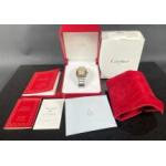 FABULOUS Gold and Stainless steel SANTOS DE CARTIER with date adjustment wrist watch with FULL PROVENANCE, all paperwork, including service receipts and original presentation box and certificate with original pouch