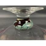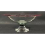 A large (28cm dia) glass tazza with a promegranate coloured rim from the PHOENIX GLASS STUDIO of British Columbia
