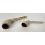 An old tin to contain a collection of old smoking pipes, two of which are antique clay pipes
