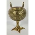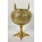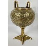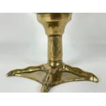 A vintage Chinese bronze dish with a detachable web foot stands approx 17cm tall plus a pair of PRIMA PLATE (Swedish) candle holders and a pair of JORGEN STEFFENSON (Danish) candle holders