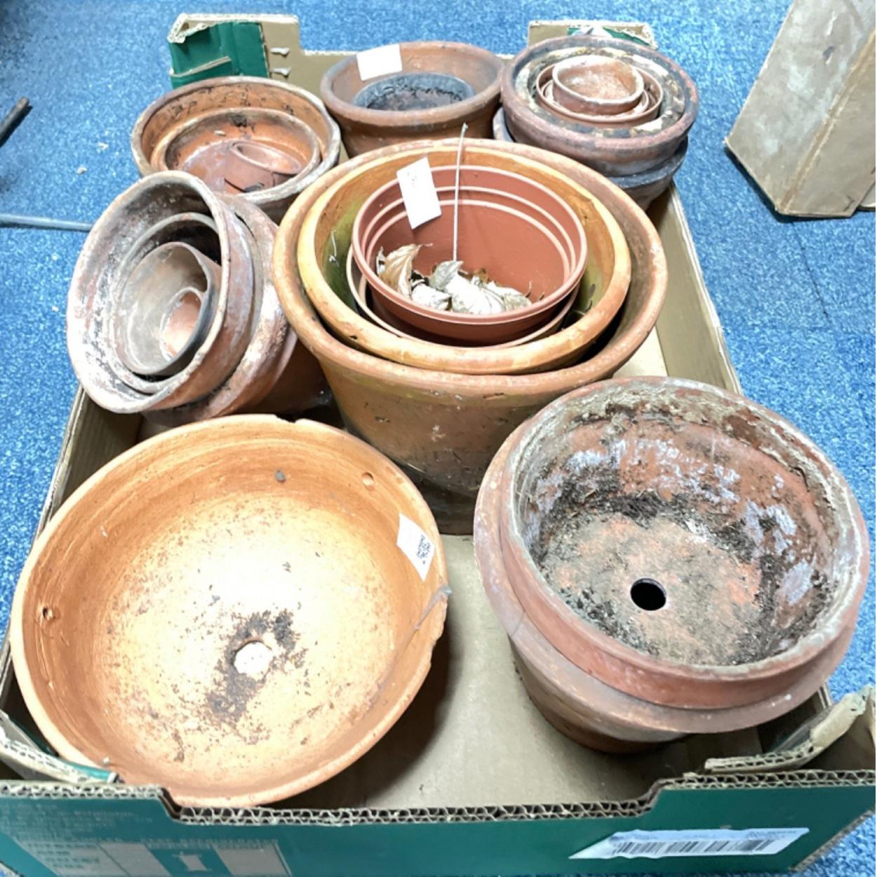 CLASSY TERRACOTTA! The growing season has begun - a box full of terracotta pots of various sizes